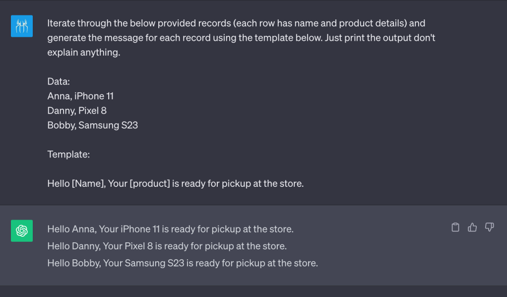 We can inform GPT on how we want the response to be. We can give GPT a template and ask GPT to respond in the same format.
