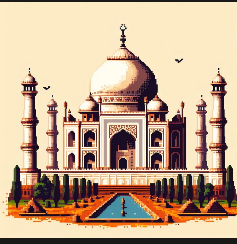 Prompt – Generate an image of Taj Mahal in pixel art style