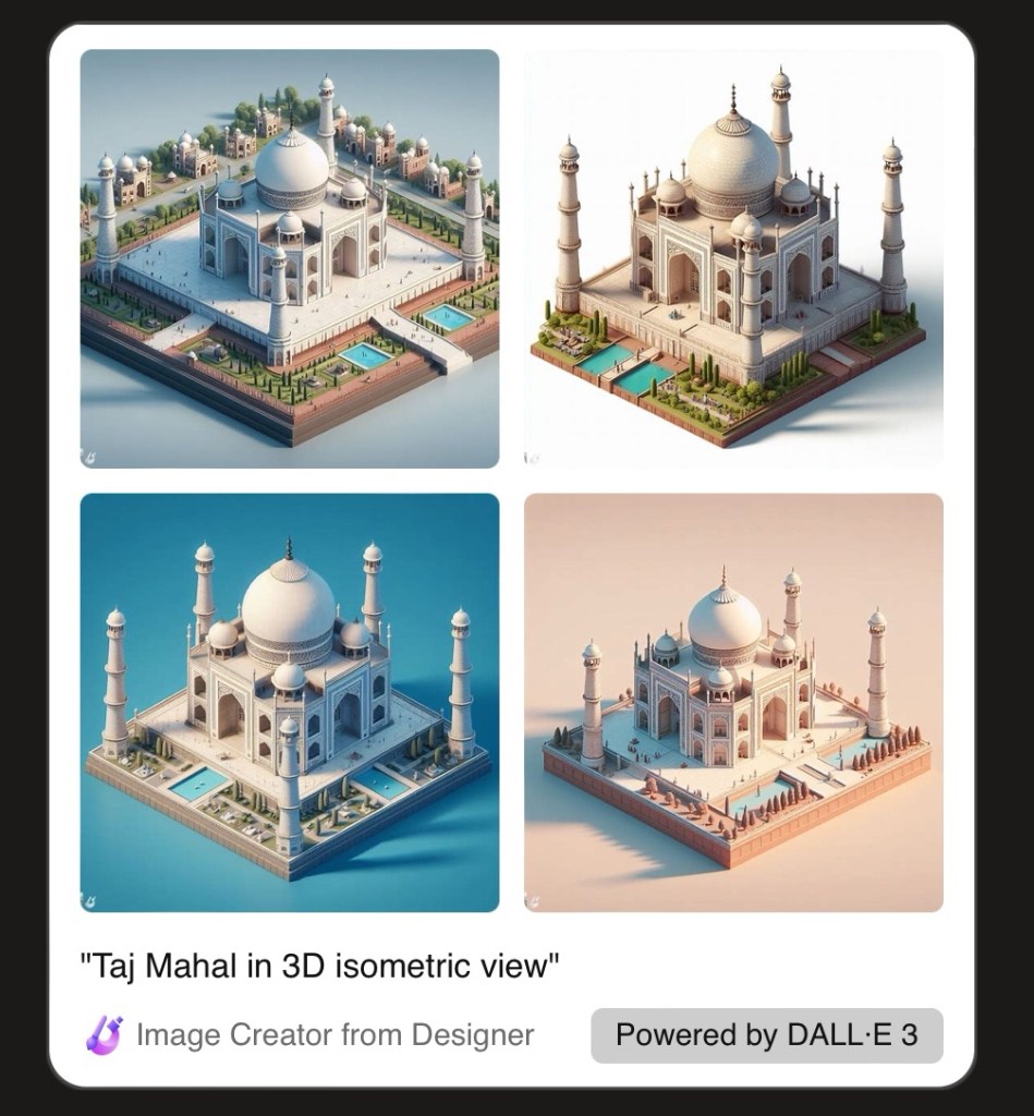 Prompt – Generate an image of Taj Mahal in 3D isometric view