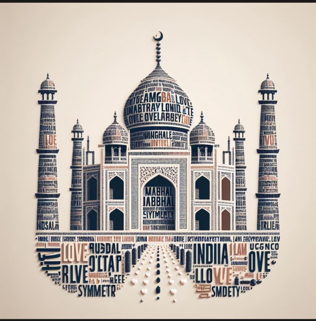 Prompt – Generate an image of Taj Mahal in a typographic style