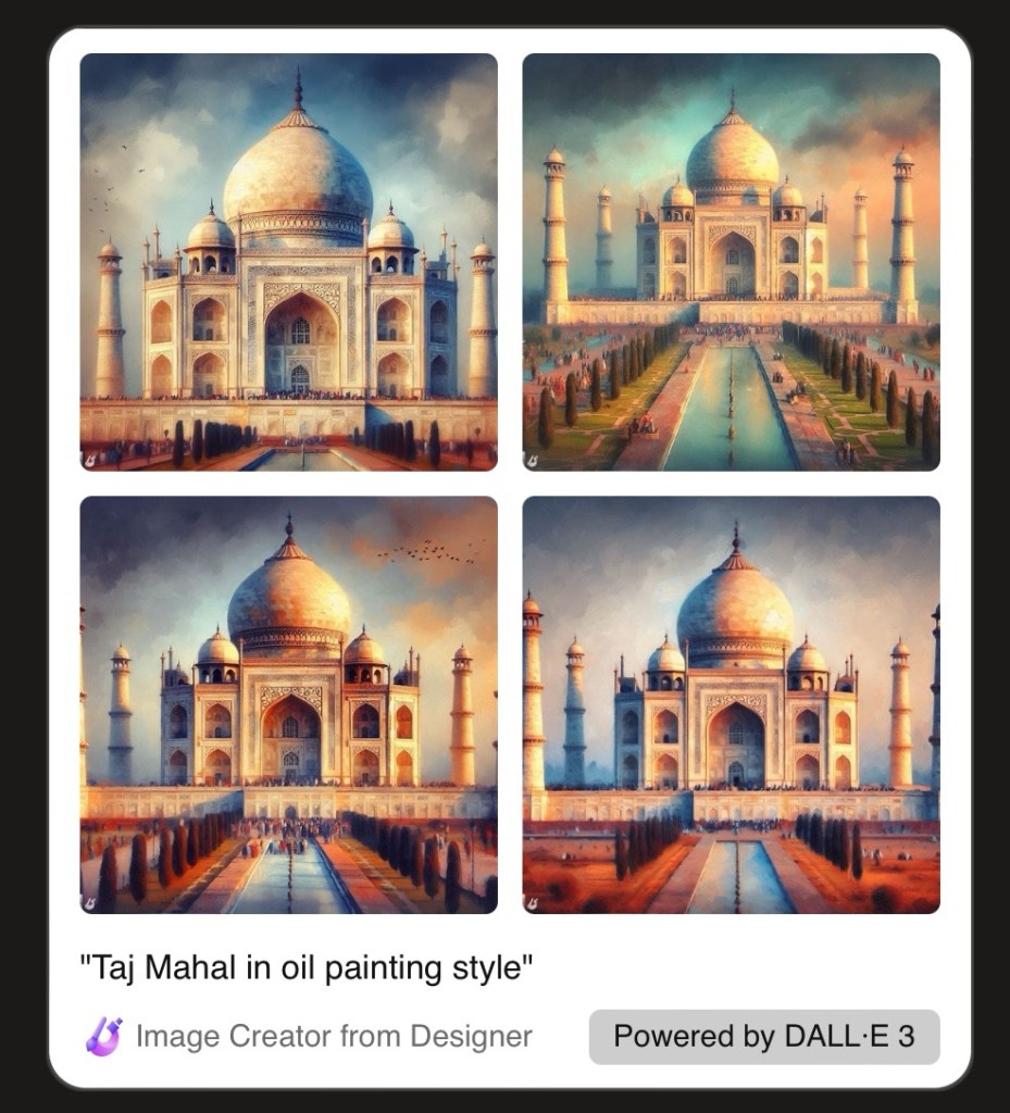 Prompt – Generate an image of Taj Mahal in oil painting style