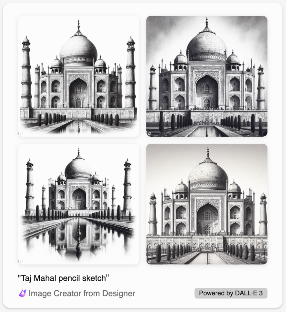 Prompt – Generate an image of Taj Mahal in a pencil sketch style